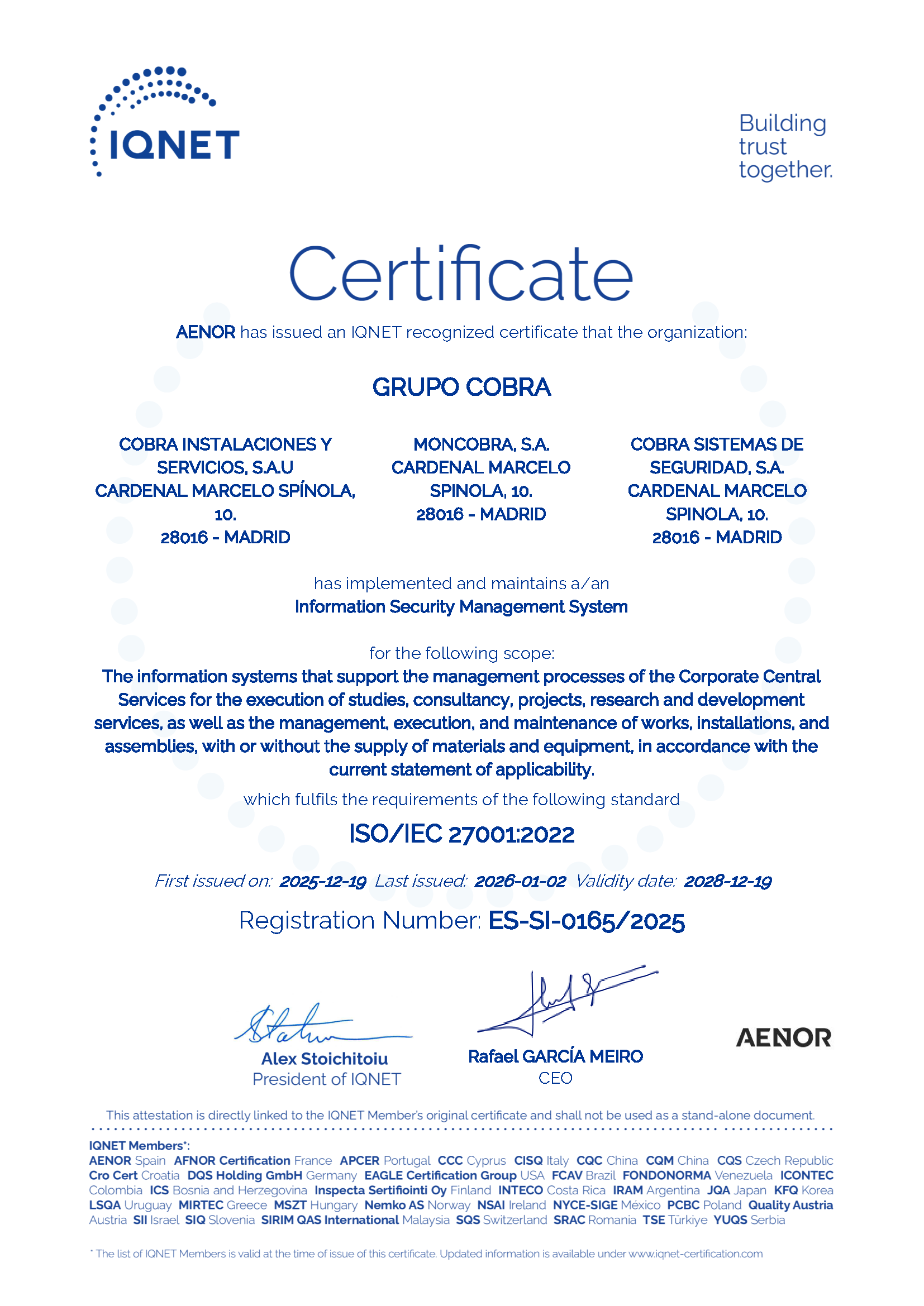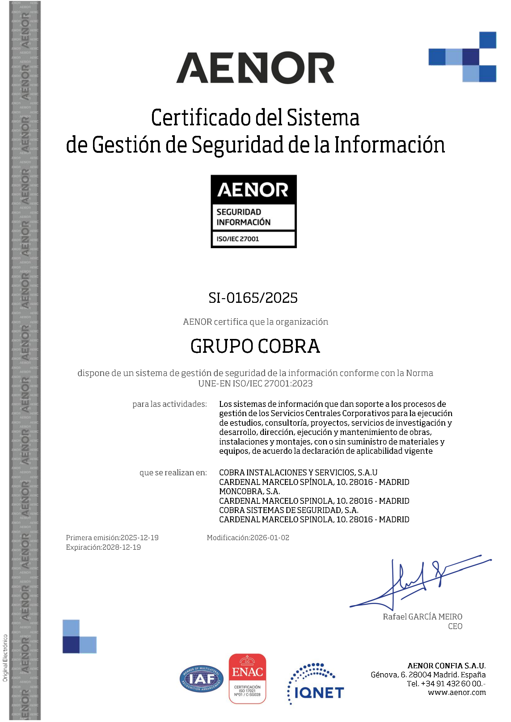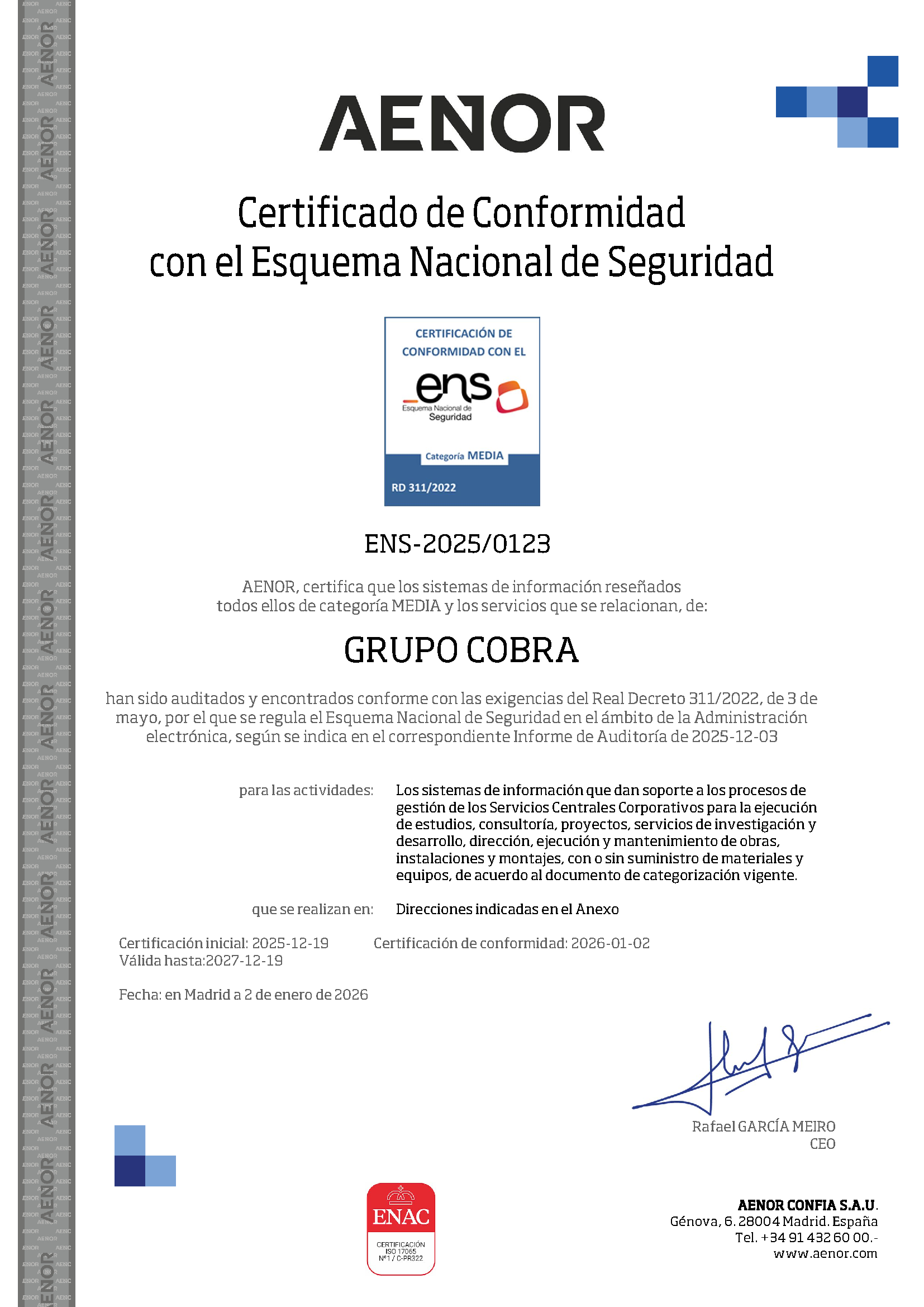 Grupo Cobra utiliza cookies propias y de terceros con la finalidad de analizar la navegación y el tráfico generado a efectos estadísticos, mostrarle la ubicación de nuestras oficinas, así como recabar sus datos de contacto.